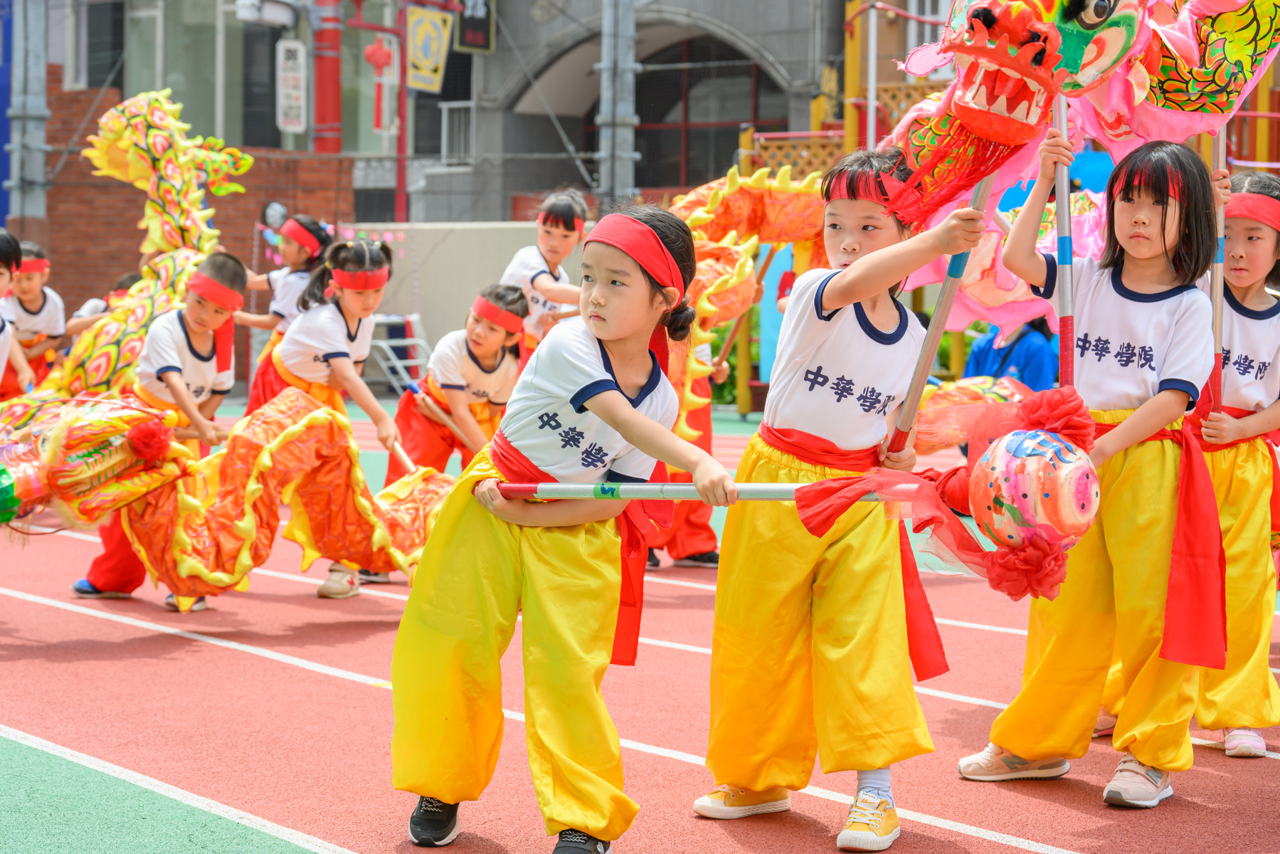 ・伝統文化の龍舞や獅子舞に触れるため子供たちのノリが超いい!