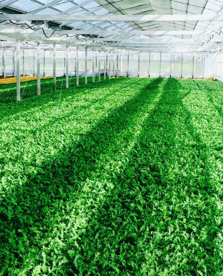 自社農場で栽培している葉物野菜(ベビーリーフ)を包装